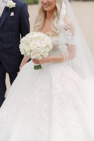Sophie & Charlie’s wedding day was held at the beautiful Wadhurst Castle in Sussex. We created all flower arrangements and bouquets to fit in to the all white wedding theme, using flowers such as garden roses, ranunculus, hydrangea and spray roses.